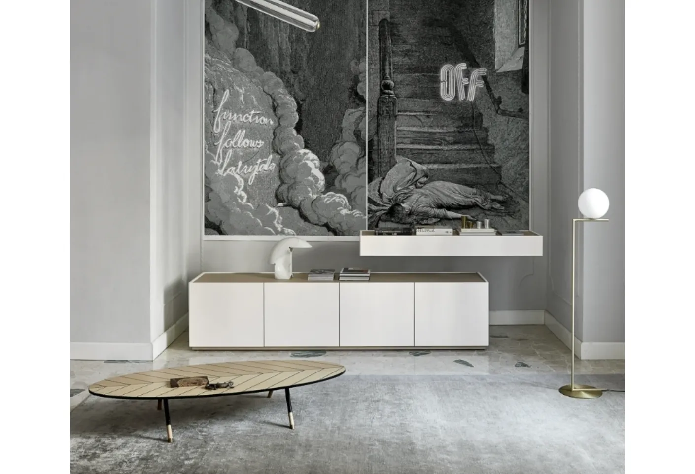 Cherchez-vous un nouveau buffet beau et de grande qualité aux lignes modernes? Voici le modèle Cidori 03 de Sangiacomo, réalisé en laqué mat.