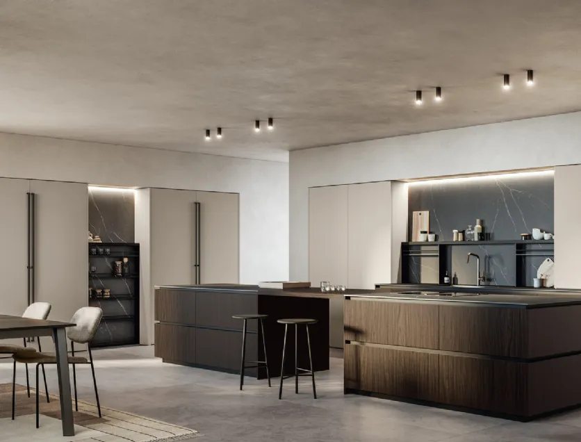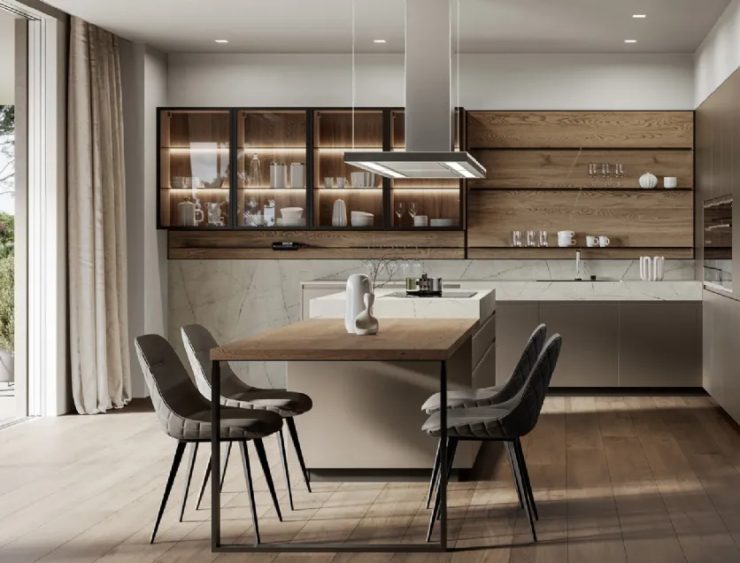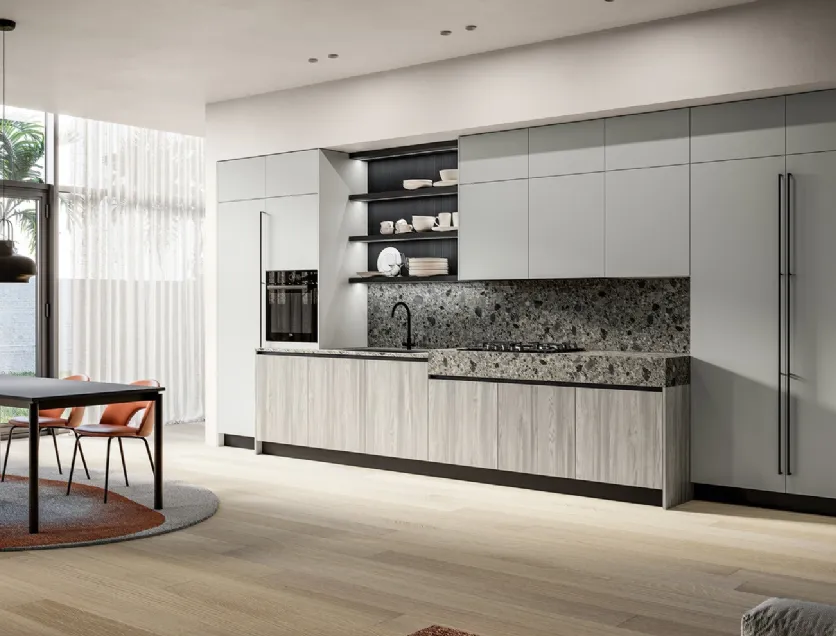 Une petite cuisine est plus fonctionnelle si elle est meublée avec des meubles et accessoires modulaires modernes sur mesure, aux formes simples et minimales, qui vous permettent de vous déplacer librement et d'avoir toujours tout à portée de main. Notre centre d'exposition de Cuisines Modernes abrite les solutions des meilleures marques du marché pour offrir à chaque client une sélection constamment mise à jour, tant du point de vue de l'esthétique que du point de vue de la praticité. Si vous souhaitez découvrir de nouvelles modes et tendances, visitez notre showroom et contactez nos conseillers en mobilier pour une assistance personnalisée de la conception à la réalisation du coin cuisine dont vous avez toujours rêvé. Les nouvelles solutions ont des conteneurs plus grands, des socles abaissés, des modules plus profonds et des éléments de conception développés verticalement, pour permettre une meilleure optimisation de l'environnement. Les cuisines de style moderne les apprécient pour leur fonctionnalité, pour leur style bien défini et parce qu'elles sont idéales pour aménager de petits espaces, ainsi que des espaces ouverts, car elles peuvent être réalisées sur mesure. De plus en plus dépourvus de poignées, ils ont des façades uniformes avec ouverture rainurée: c'est l'une des caractéristiques les plus marquantes de ces solutions, en effet l'ouverture rainurée donne un sentiment d'essentialité, de rigueur et de sobriété au coin cuisine.