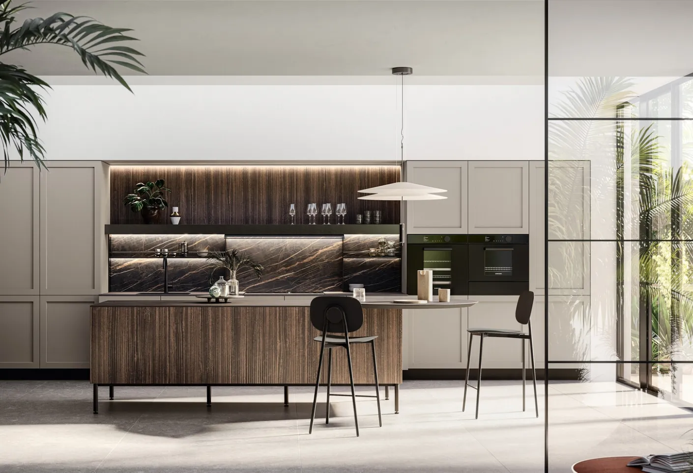 Cuisines modernes avec îlot : cliquez et découvrez un catalogue riche en solutions de la marque Arredo3, comprenant le modèle Alma 03.