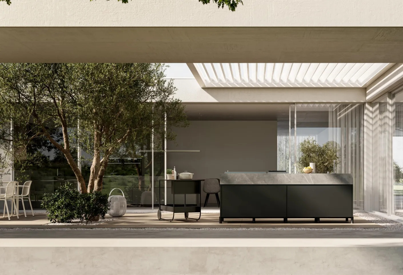 Le choix d'une des Cuisines Modernes de l'entreprise Arredo3 garantit une grande personnalisation et une fiabilité maximale : obtenez des informations sur la Cuisine Moderne extérieure Aura 01 d'Arredo3. Le modèle en métal sur la photo peut être décliné dans de nombreuses configurations, teintes et finitions d'un fort impact décoratif pour vous permettre d'aménager l'espace avec rationalité, en vous assurant la praticité et le rangement dont vous avez besoin. Choisissez la cuisine qui vous convient parmi les différentes solutions avec îlot disponibles sur le marché : vous pourrez aménager les espaces en les mettant en valeur pleinement.