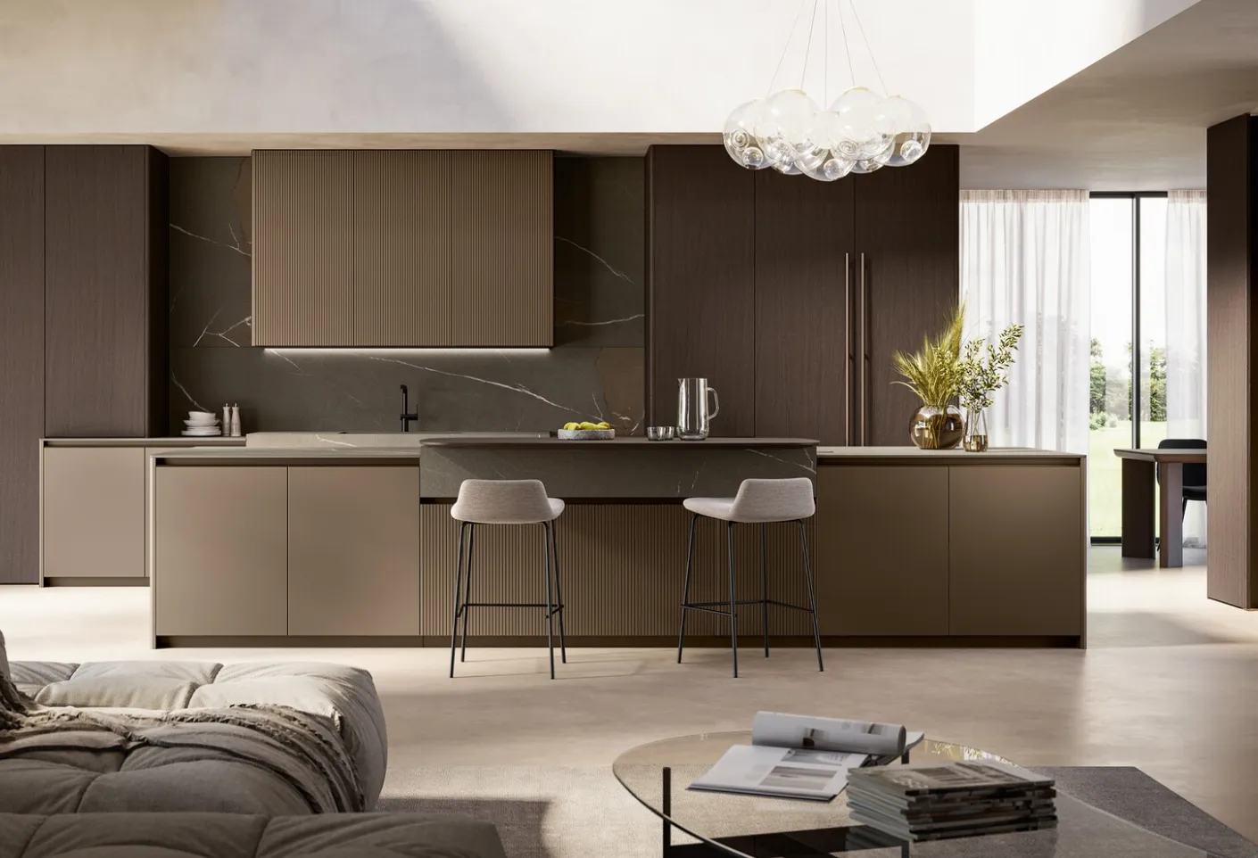 Pour rendre la Cuisine Moderne avec îlot Time 01 d'Arredo3 l'une des solutions les plus exclusives de l'entreprise, outre ses belles décorations, c'est le matériau : elle est construite en laqué mat pour garantir confort et qualité au fil des ans. Vous attendent différentes propositions modernes avec îlot pour la zone cuisine, idéales pour ceux qui recherchent un espace intime, pratique et confortable mais moderne dans le style. Si vous voulez une solution aux lignes essentielles, caractérisée par un design plus "léger", nous vous recommandons d'orienter votre achat vers les Cuisines Modernes de l'entreprise Arredo3.