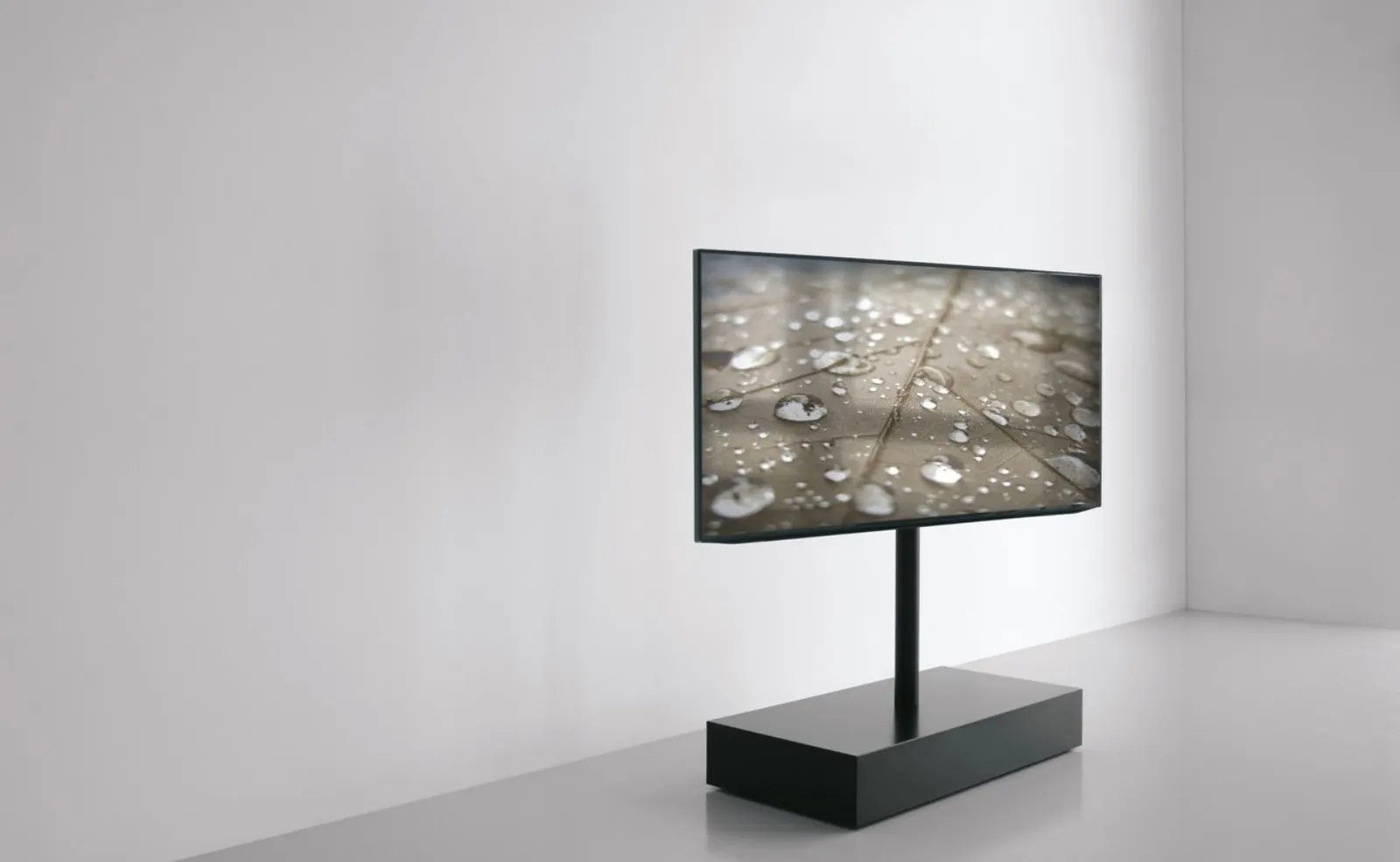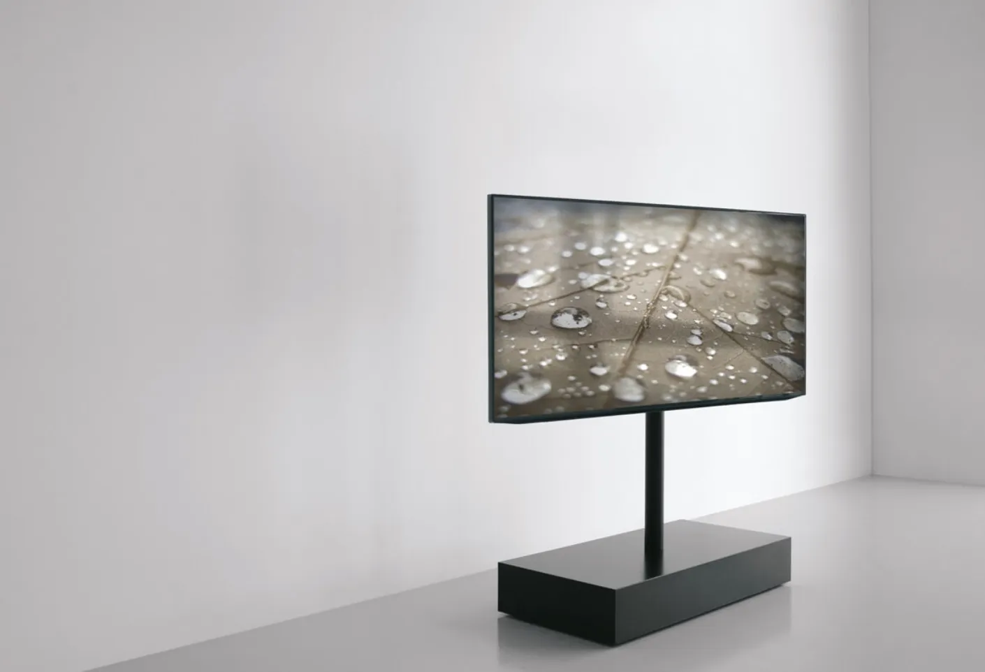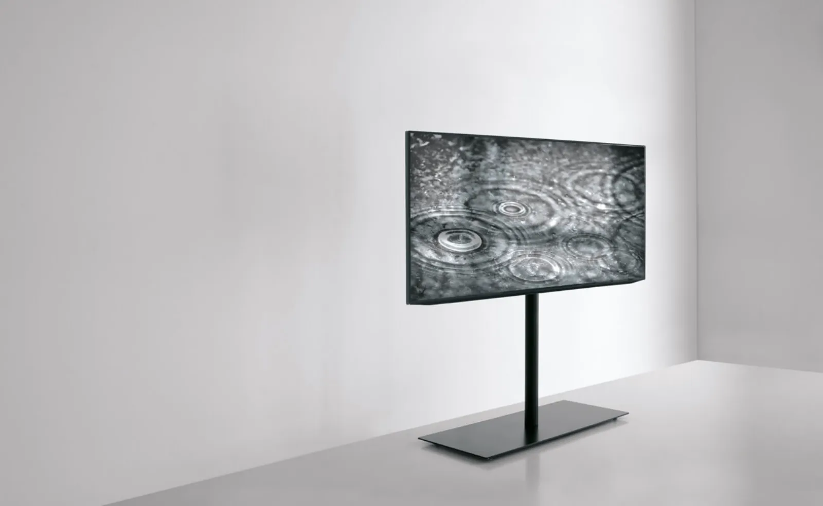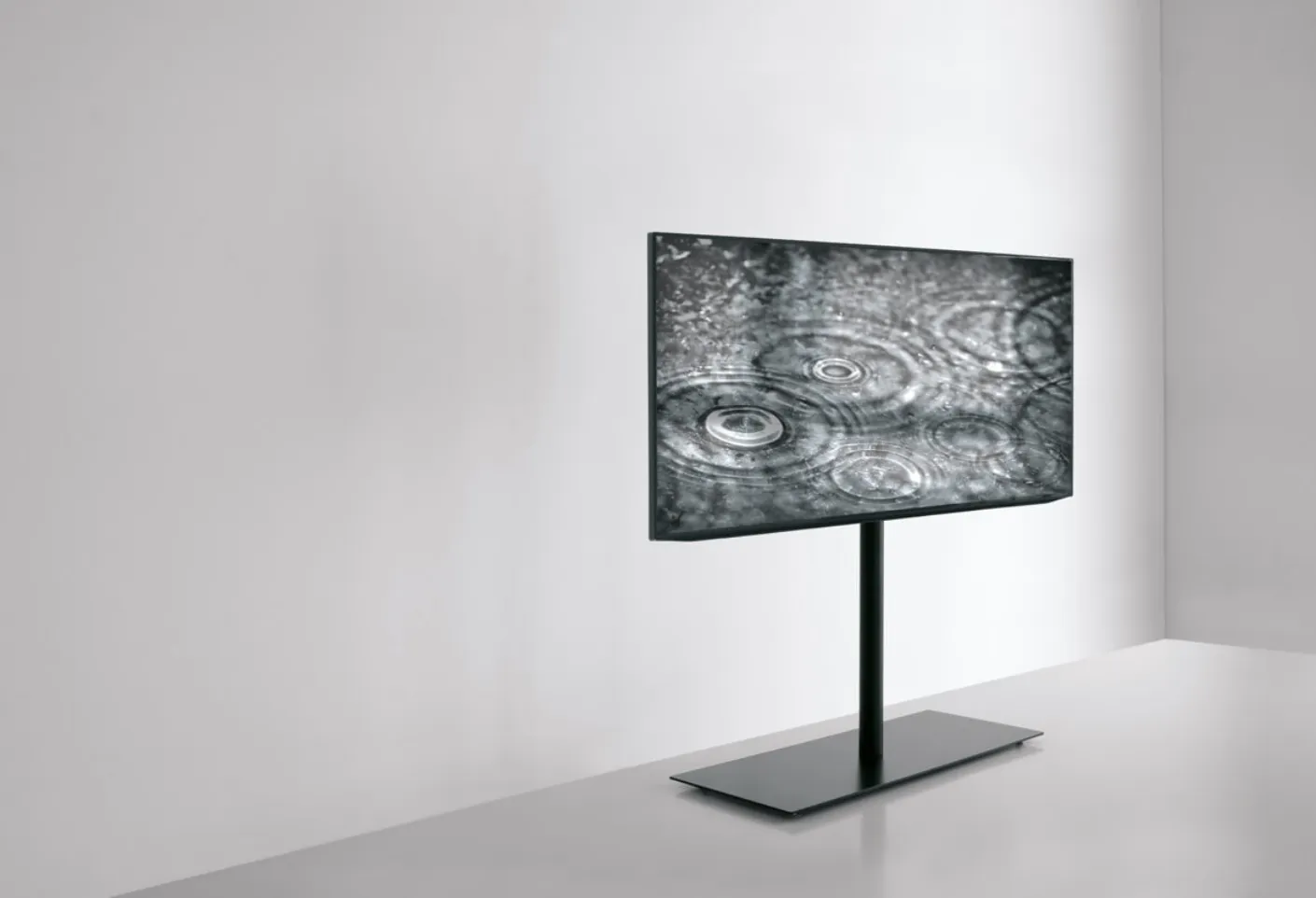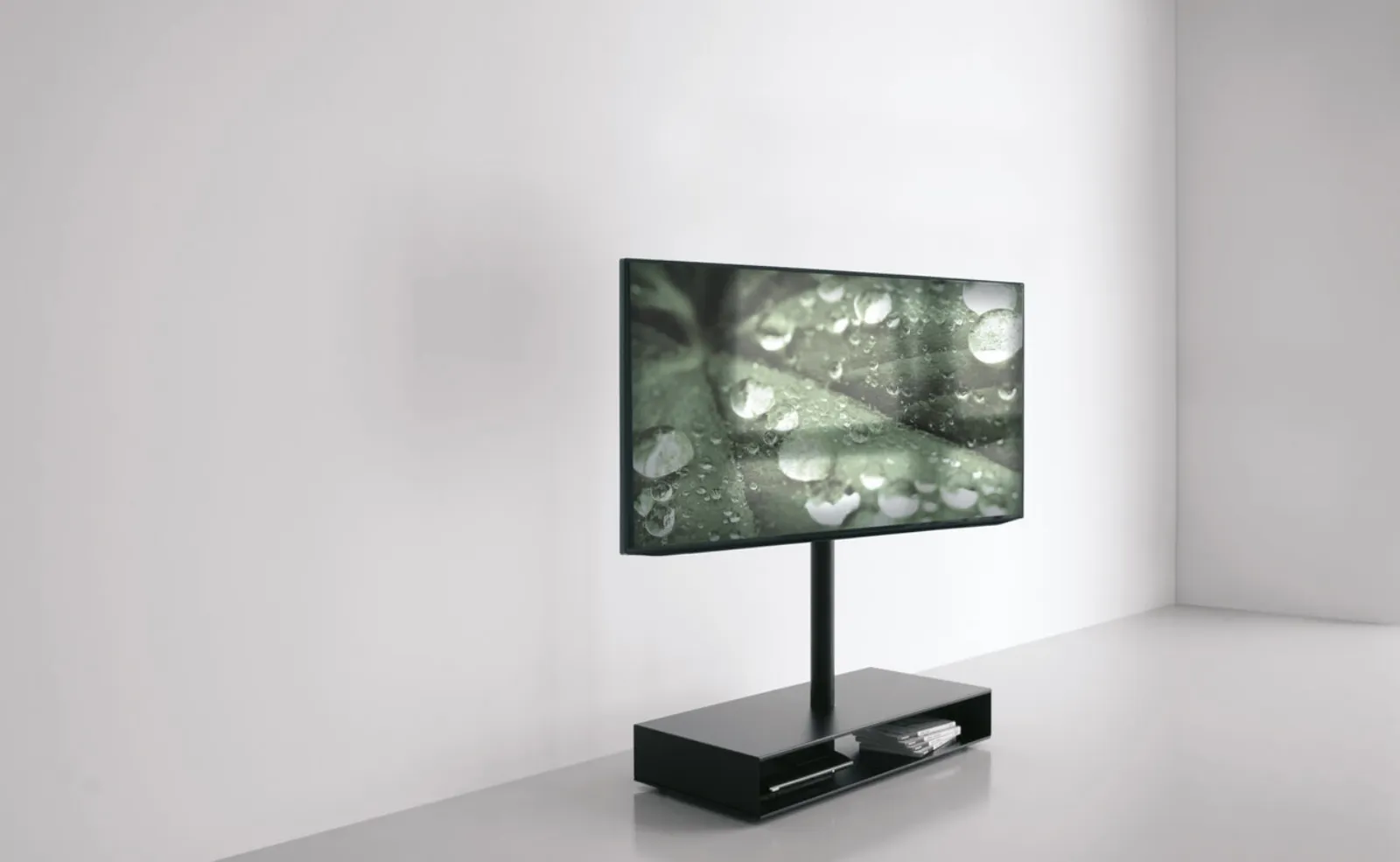 Support TV mobile pour le salon Extendo en métal : cliquez et obtenez des informations sur le modèle Spin 360 configuration 01, conçu pour les espaces modernes.