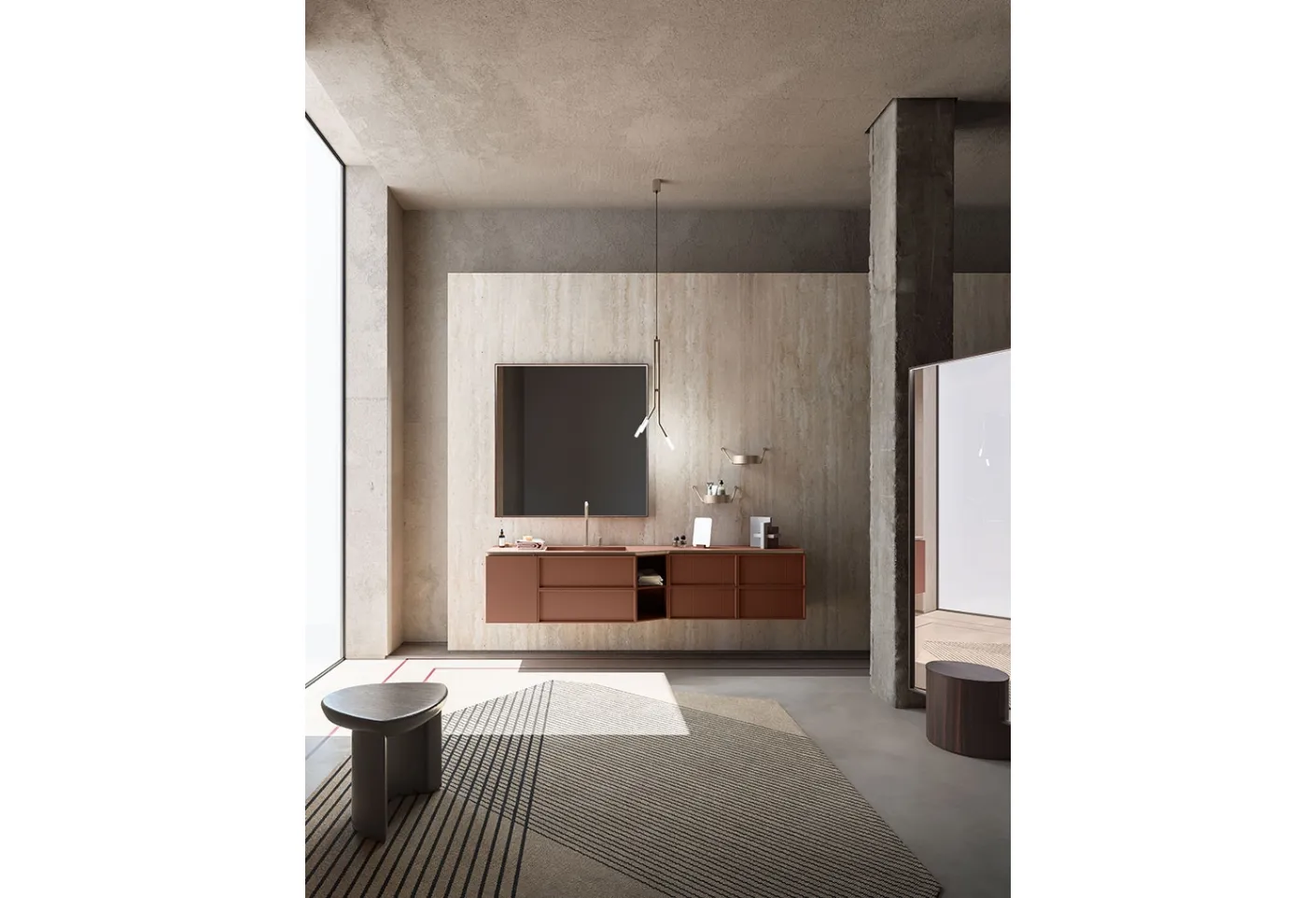 Meubles de salle de bain suspendus en laqué mat de la marque Cerasa : cliquez et découvrez le mobilier de salle de bain design Des Evolution Sandstone 01 pour la salle de bain
