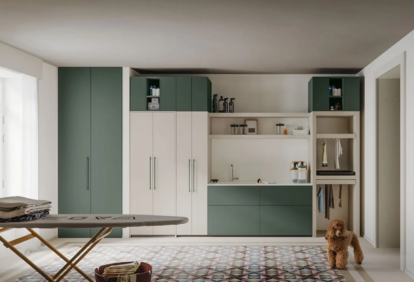 Meuble pour buanderie Règle 03 de Cerasa : cliquez et découvrez plus d'informations sur les meubles de salle de bain pour buanderie en mélaminé et les