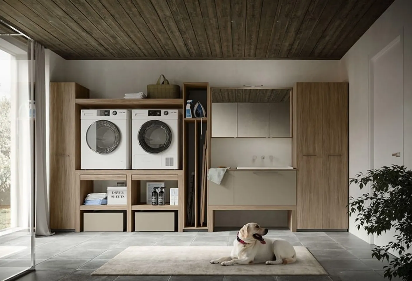 Décorez la salle de bain de votre maison moderne à la perfection avec Regola 04, des meubles de salle de bain pour buanderie et des objets en mélamin