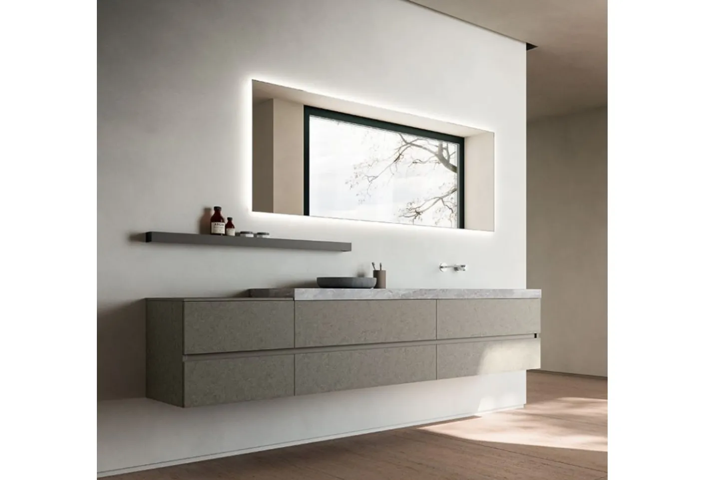 Meubles de salle de bain suspendus en mélaminé de la marque Cerasa : cliquez et découvrez l'ameublement de salle de bain moderne Segno