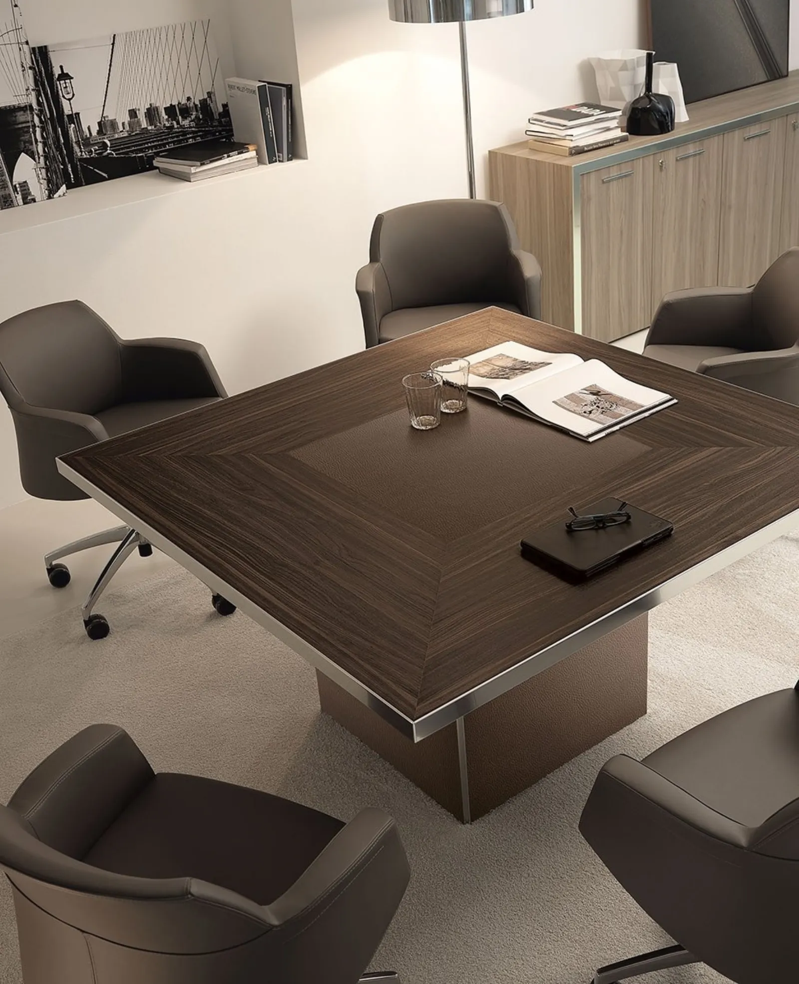 Si vous voulez des bureaux de direction IVM, cliquez et obtenez des informations sur le modèle Athos, un bureau en cuir pour bureaux opérationnels et de direction!