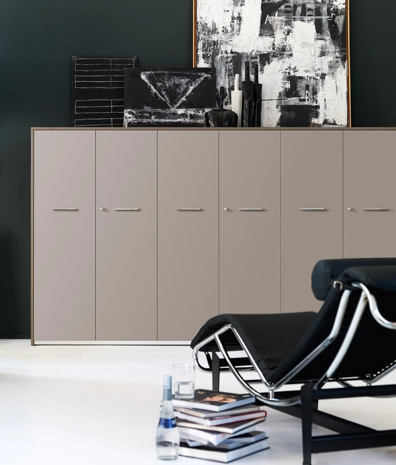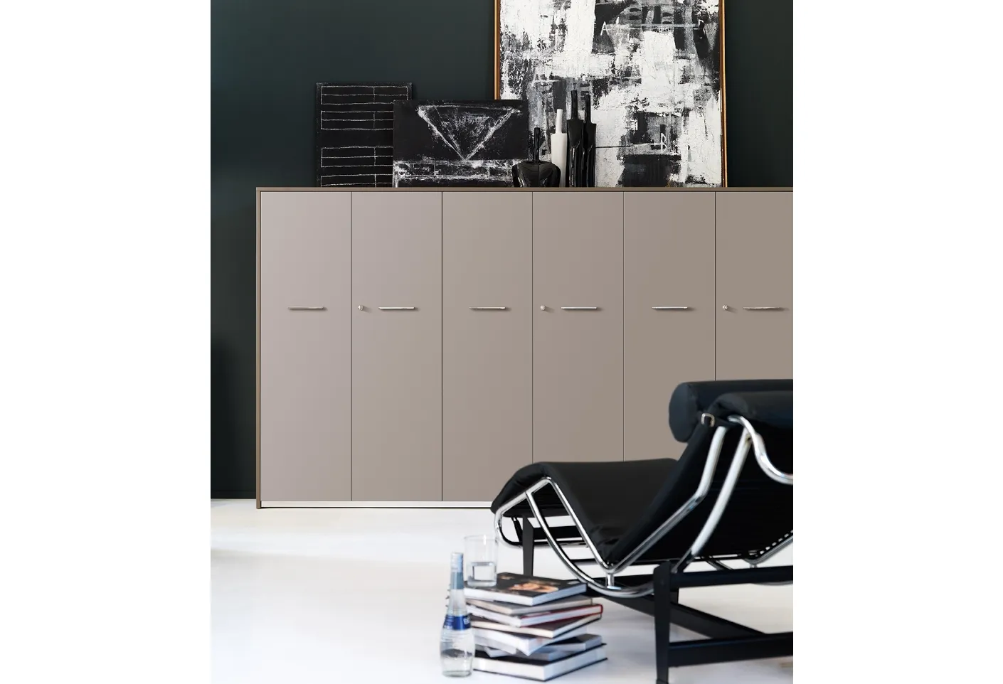 Meuble de rangement finition vison de IVM : conçu sur mesure pour résoudre divers problèmes, il optimise en fait tous les espaces disponibles en les embellissant. Cette solution, parmi les nombreux placards de bureau en mélaminé de IVM, est conçue sur mesure pour compléter l'aménagement des espaces de travail avec praticité. Le choix du mobilier de bureau le plus adapté à ses besoins est indispensable si l'on souhaite créer un espace polyvalent et bien organisé.