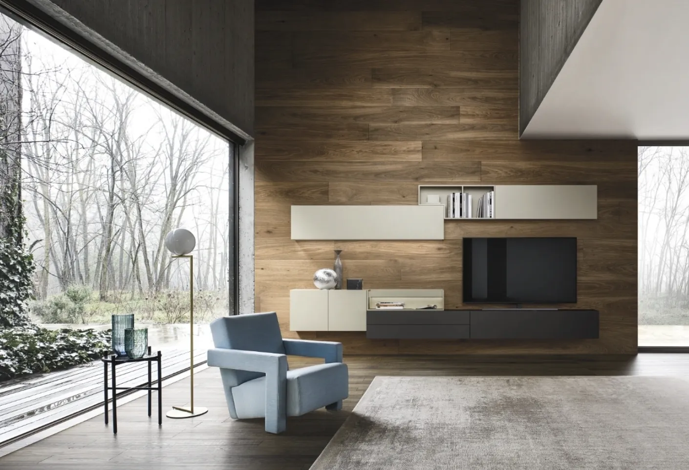 Vous voulez meubler un salon pratique et dynamique? Nous vous proposons le mur équipé Lampo 019 de Sangiacomo aux formes modernes et affirmées.
